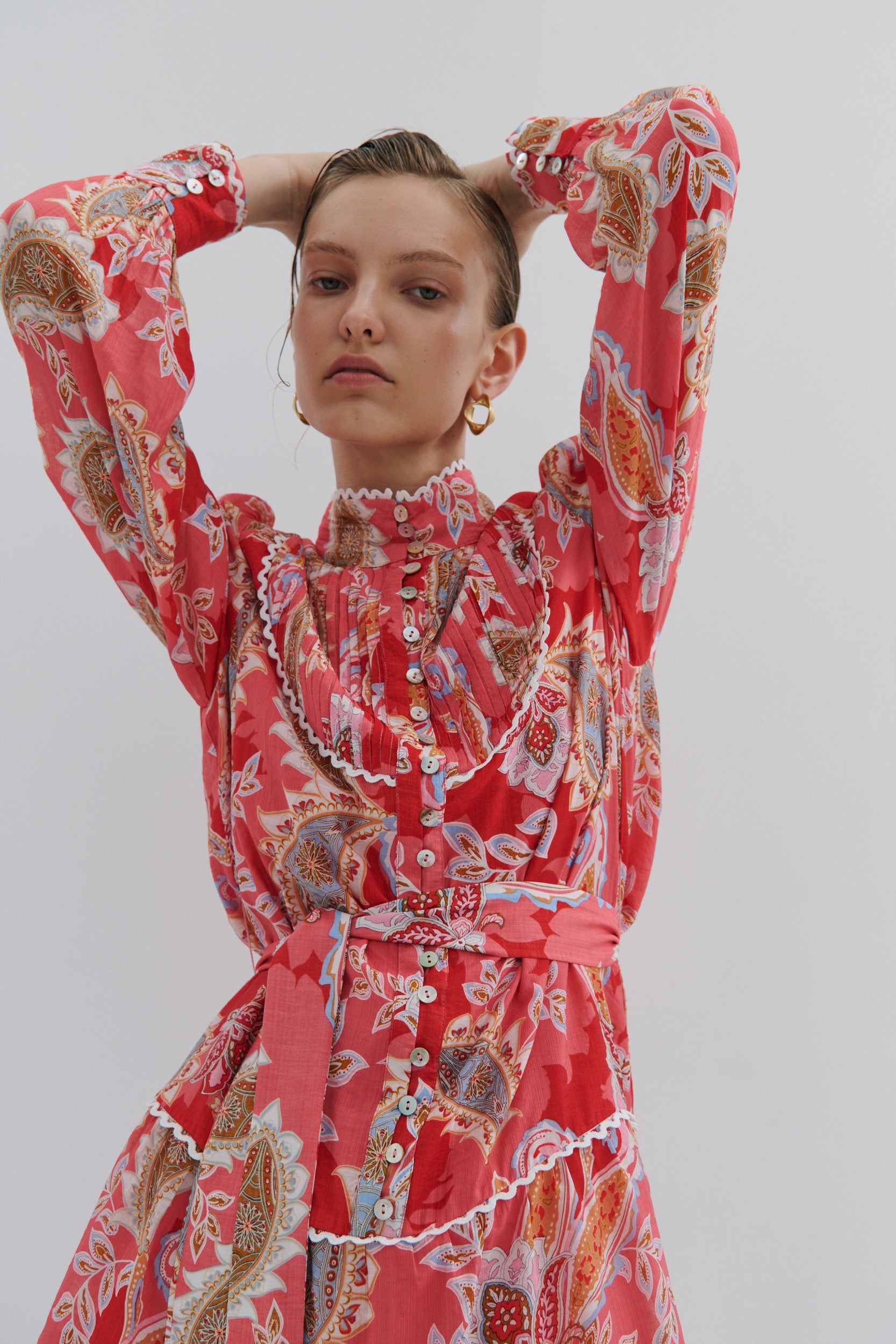For this piece we recommend delicate cool machine wash or a gentle handwash, hand dry and in the shade where possible, store hanging and only a light steam is required to remove any wrinkles.