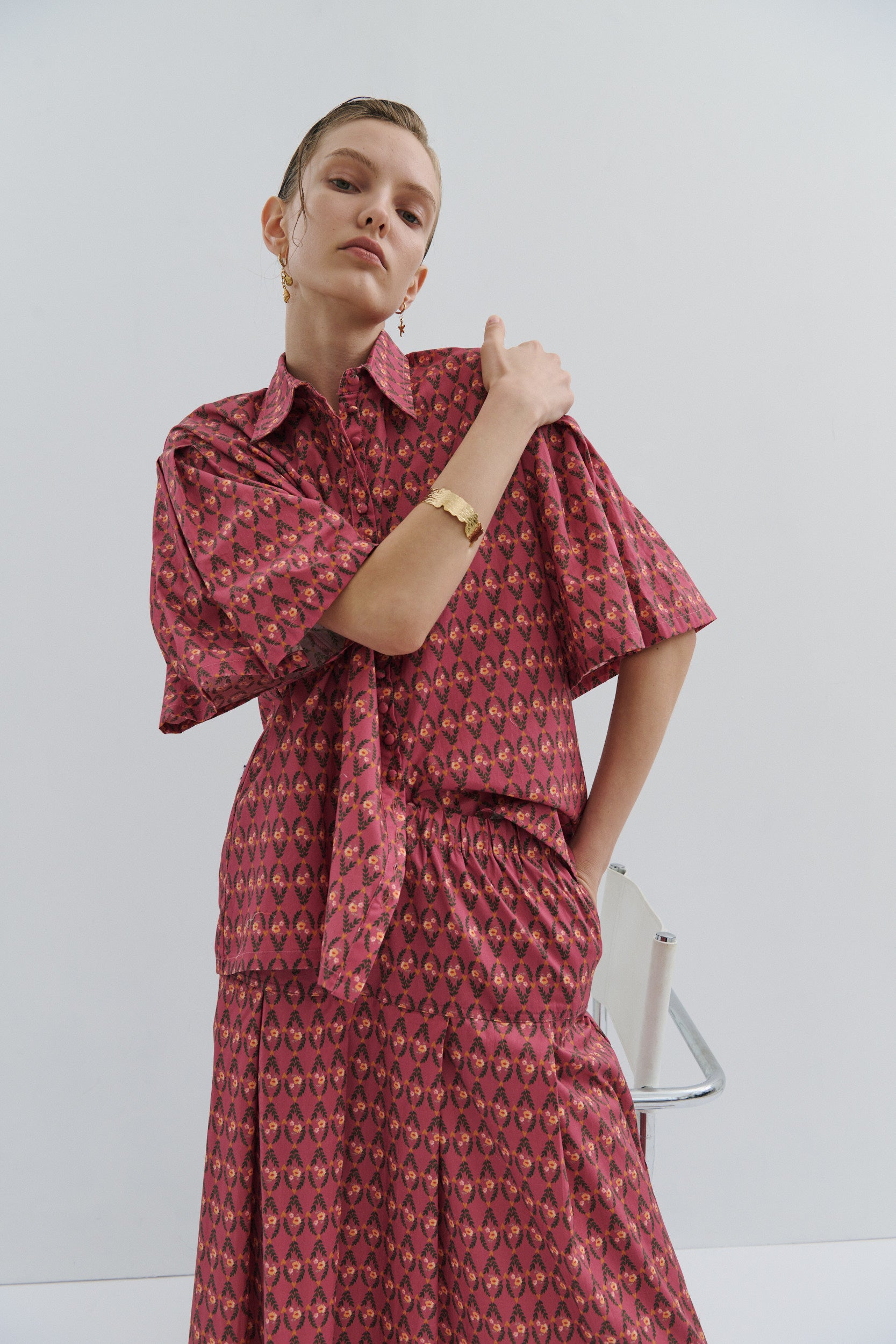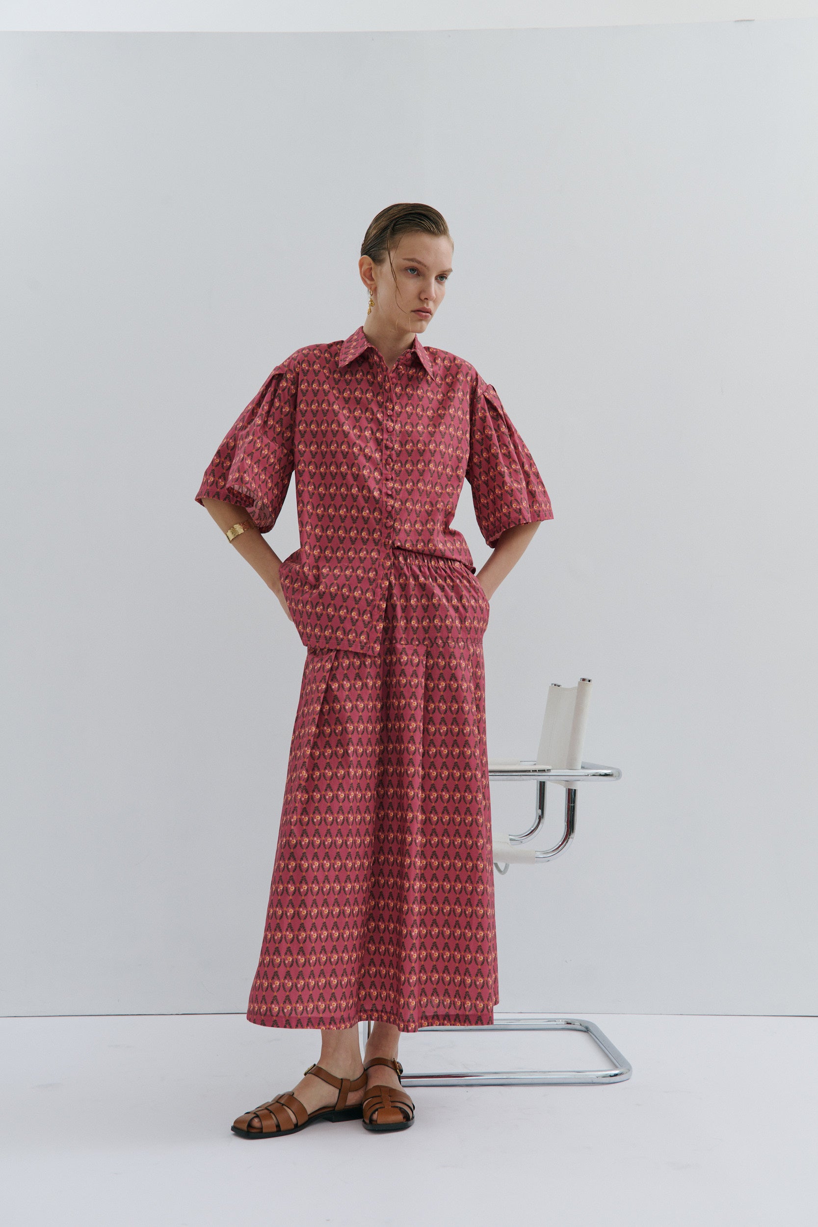 Perfectly complements the inverted box pleated shirt, creating a striking ensemble in crisp, cool Cotton Poplin.