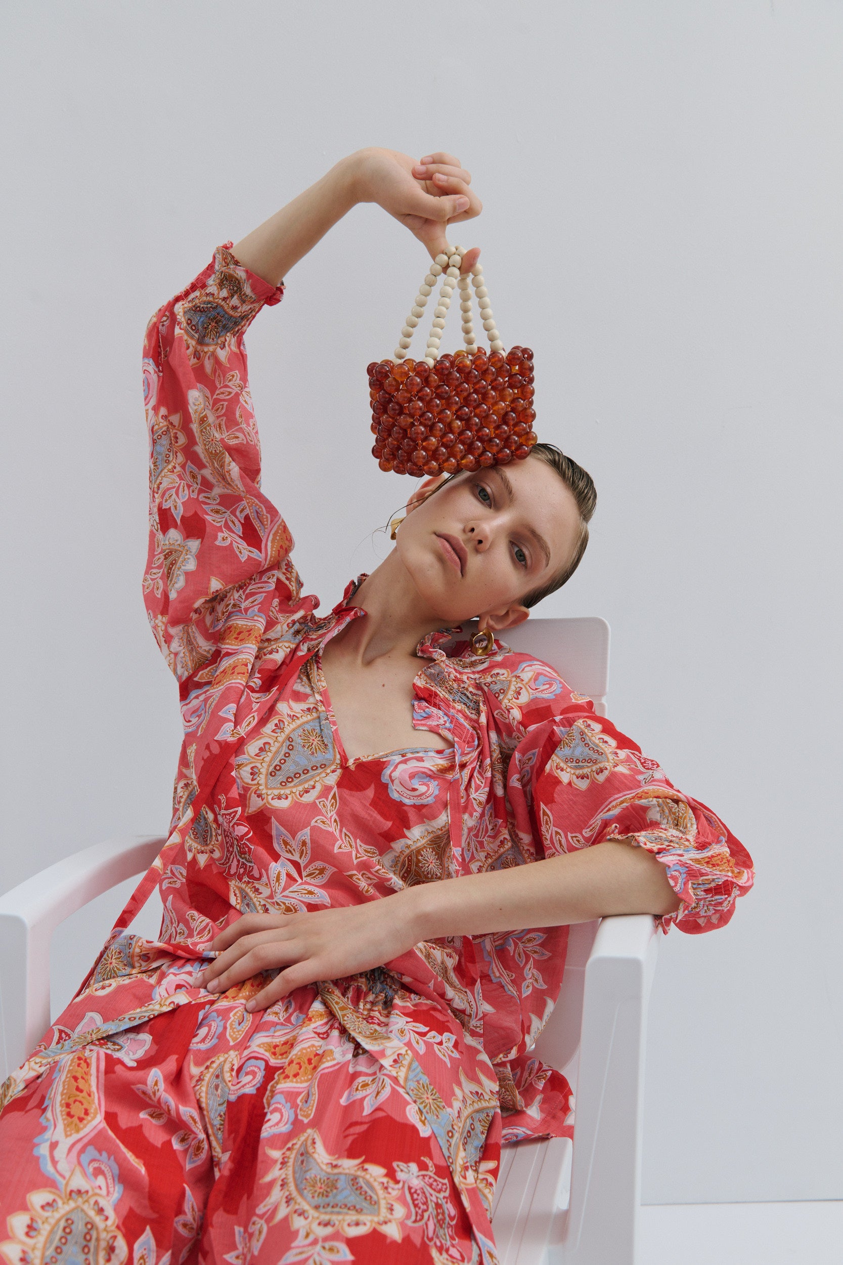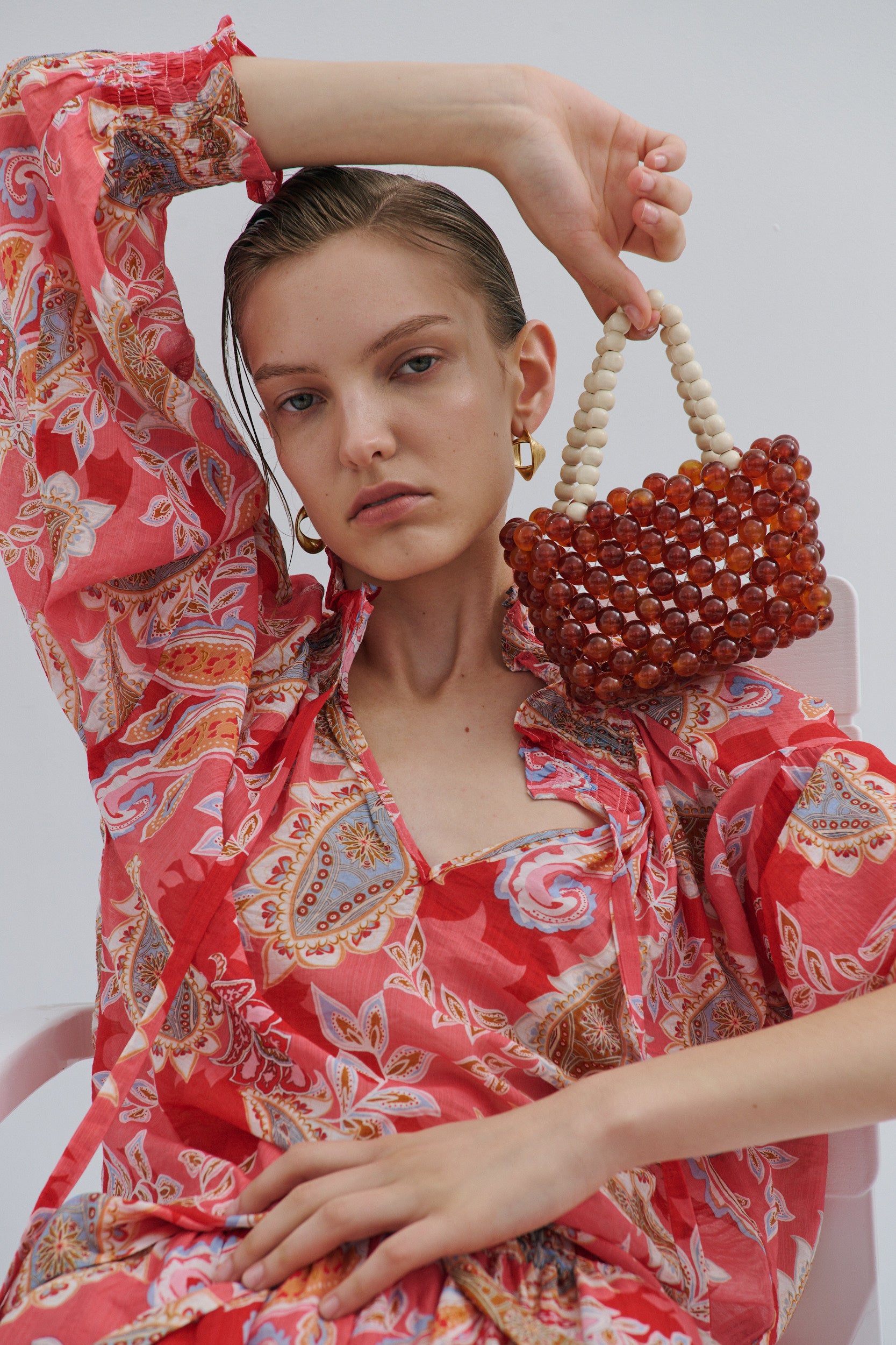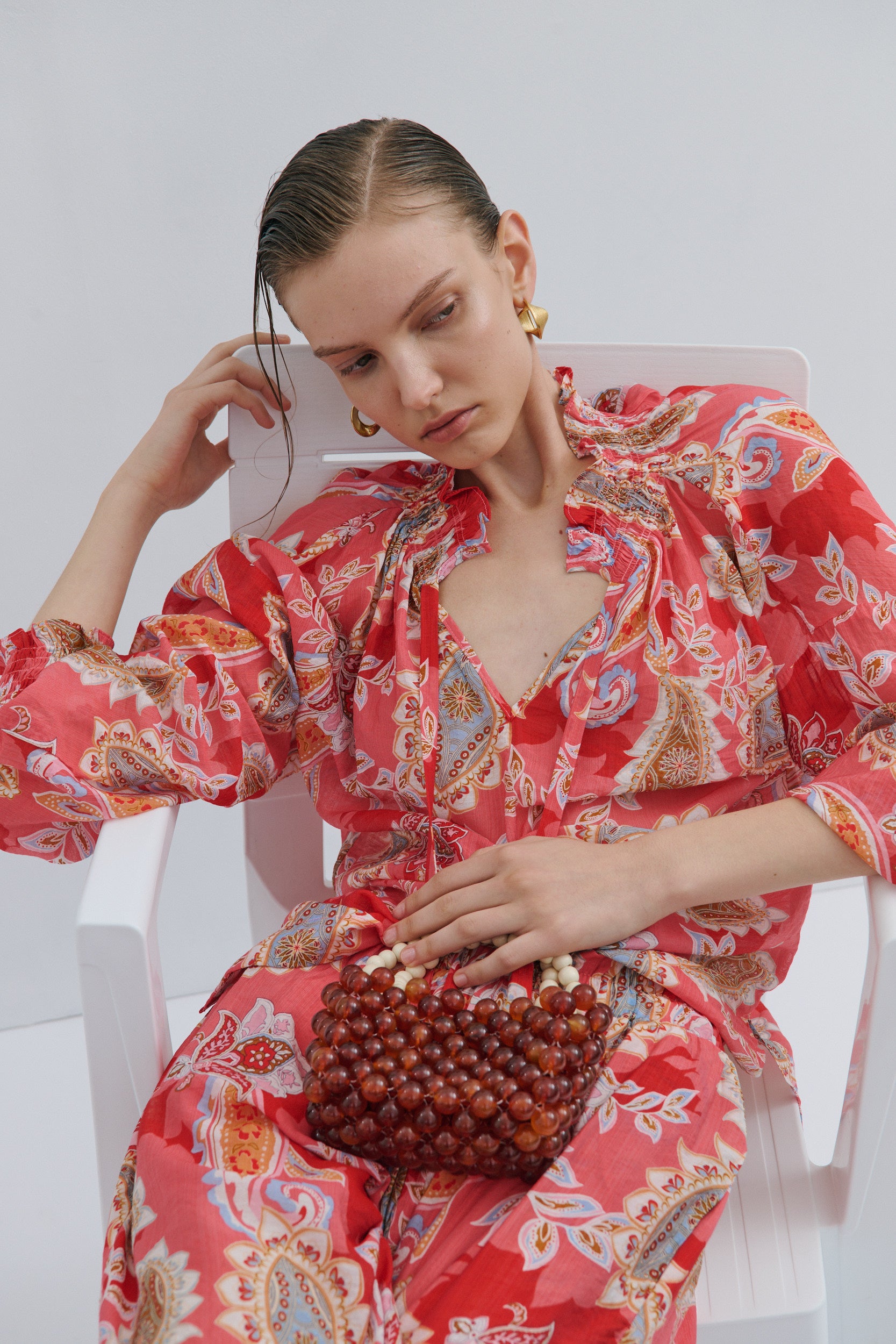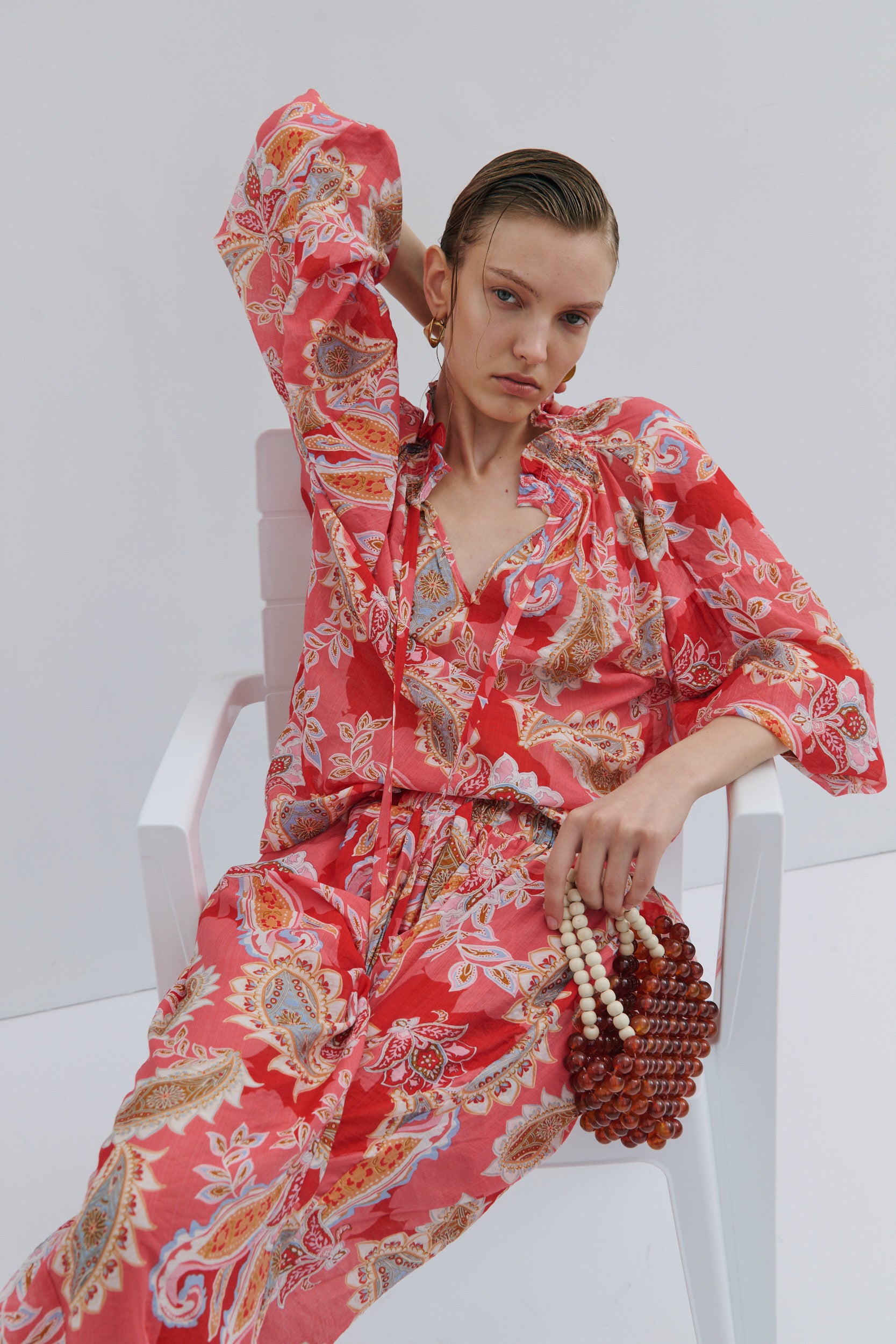 A featherlight delight, this top is silky-soft against the skin, perfect for cool spring evenings and sun-kissed days. Crafted from a light viscose blend, its charming bohemian print in a soft light pink makes it an essential wardrobe piece, especially as we head into November.